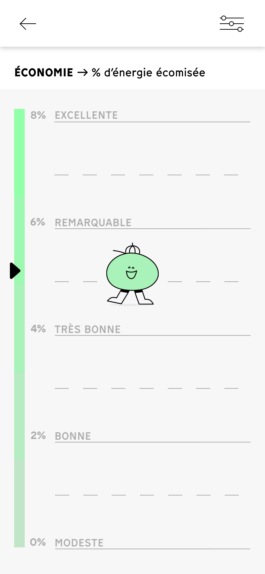 Un indicateur vertical offre une représentation visuelle du niveau d’économie d'électricité.